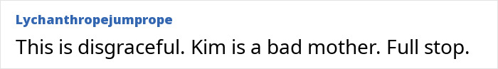 “This isn’t fun. This is neglect,” one commenter responded. “Kim is a bad mother. Full stop.”