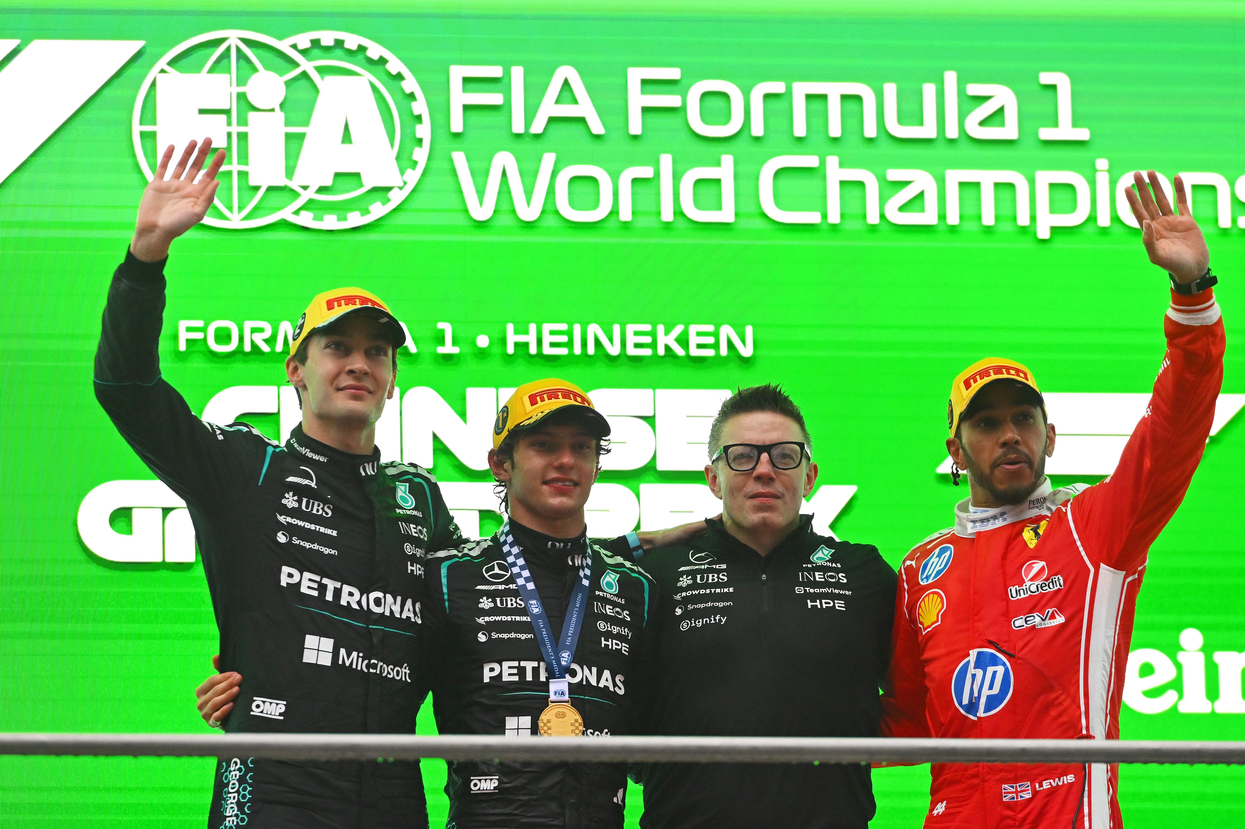 Kimi Antonelli claims emotional first F1 victory in China with Lewis Hamilton on podium