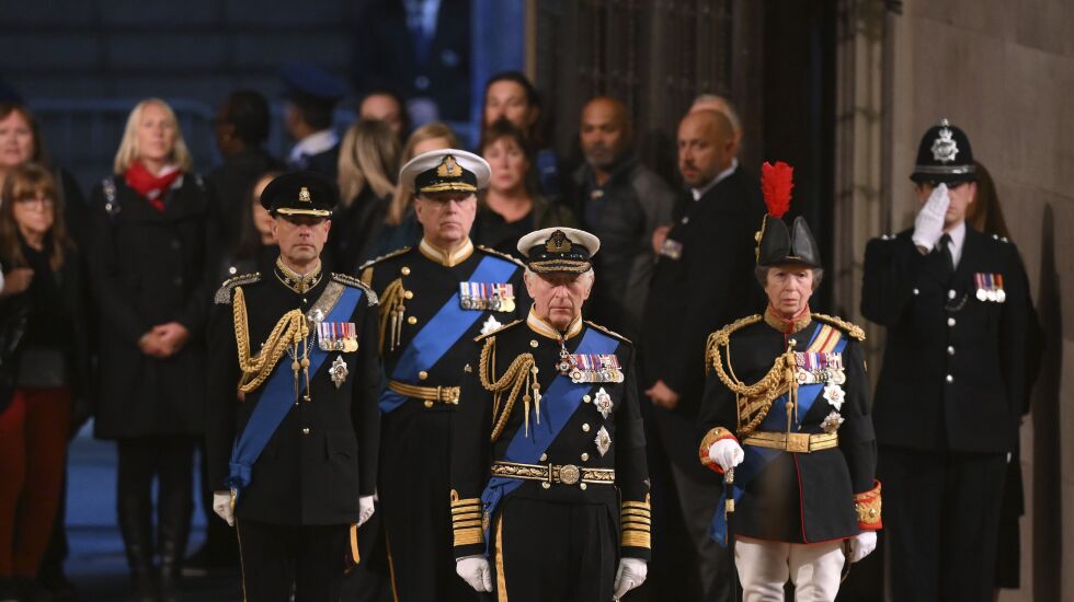 Charles returned to London to stand vigil at his mother’s coffin in the evening with his three siblings, Princess Anne, Prince Andrew and Prince Edward.