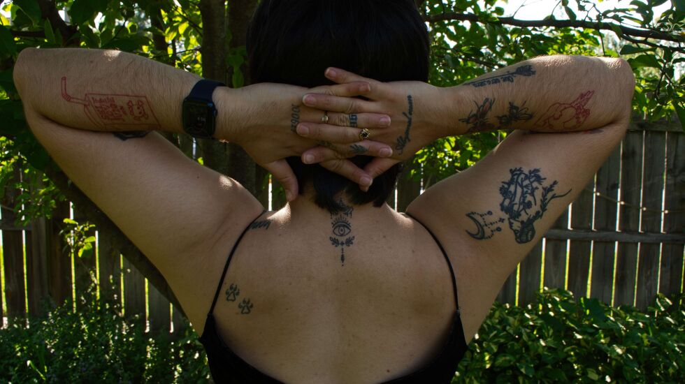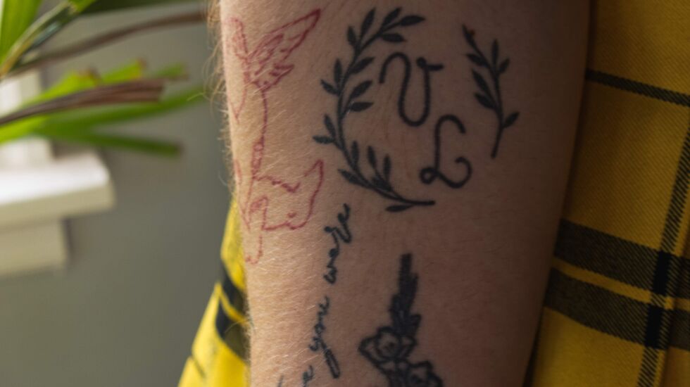 Rafi’s body is scattered with other memorials — bearpaws on her back for her late grandmother, her first tattoo, and a circle of life on her arm for her late grandfather.
