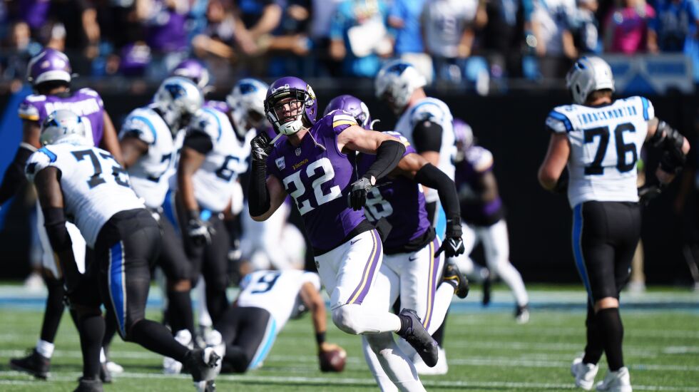 The Panthers attempted to rally, reaching the Vikings 9 with less than two minutes remaining, but Smith sacked Young twice on the final three plays, including on fourth-and-goal at the 18, to seal the win. Minnesota finished with five sacks, all coming in the second half.