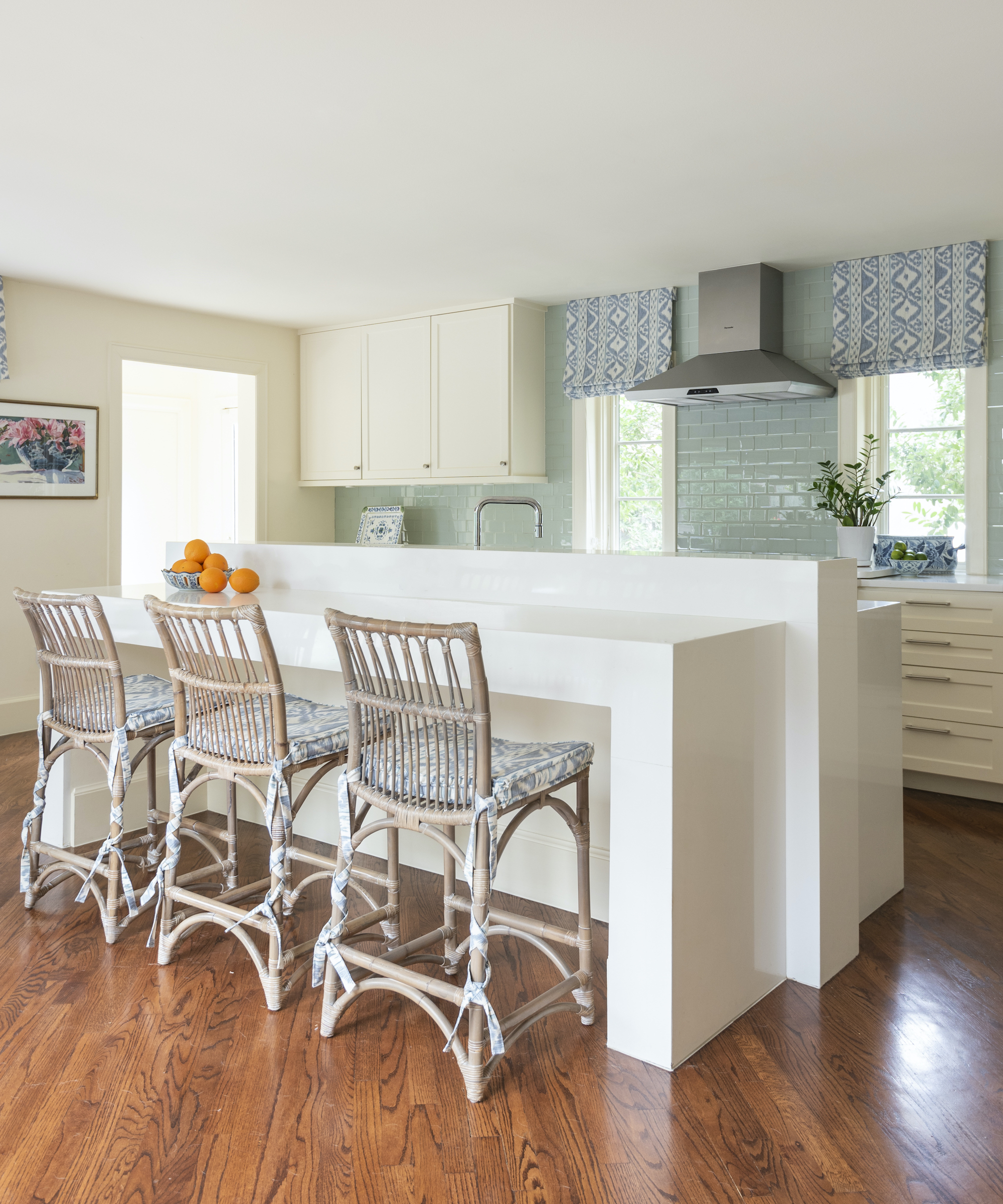 ‘The raised section on this island is definitely a detail that is doing a lot more work than it initially looks like. It gives you a clean, uninterrupted surface for seating on one side, while quietly hiding what's going on in the kitchen, from the prep mess to the sink full of dishes,’ says Courtnay Tartt Elias, founder and principal designer at Creative Tonic Design.