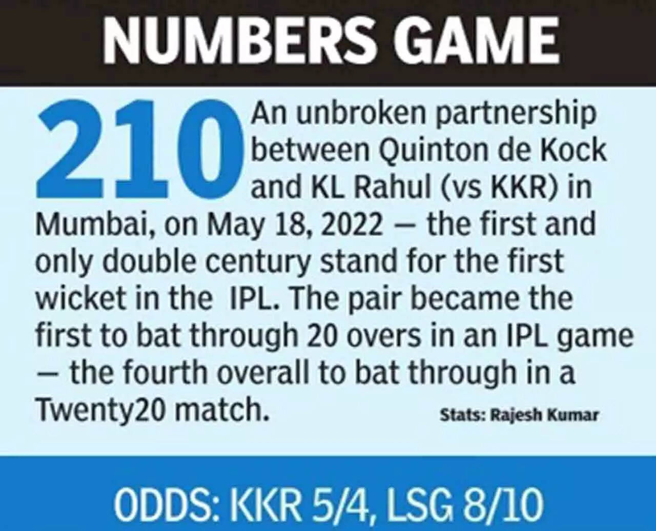 With former KKR skipper Gautam Gambhir and ex-Knight pacer Morne Morkel sitting as support staff in the visiting team's dugout, LSG will look to keep the slate clean against KKR, recording a hat-trick of victories in IPL.