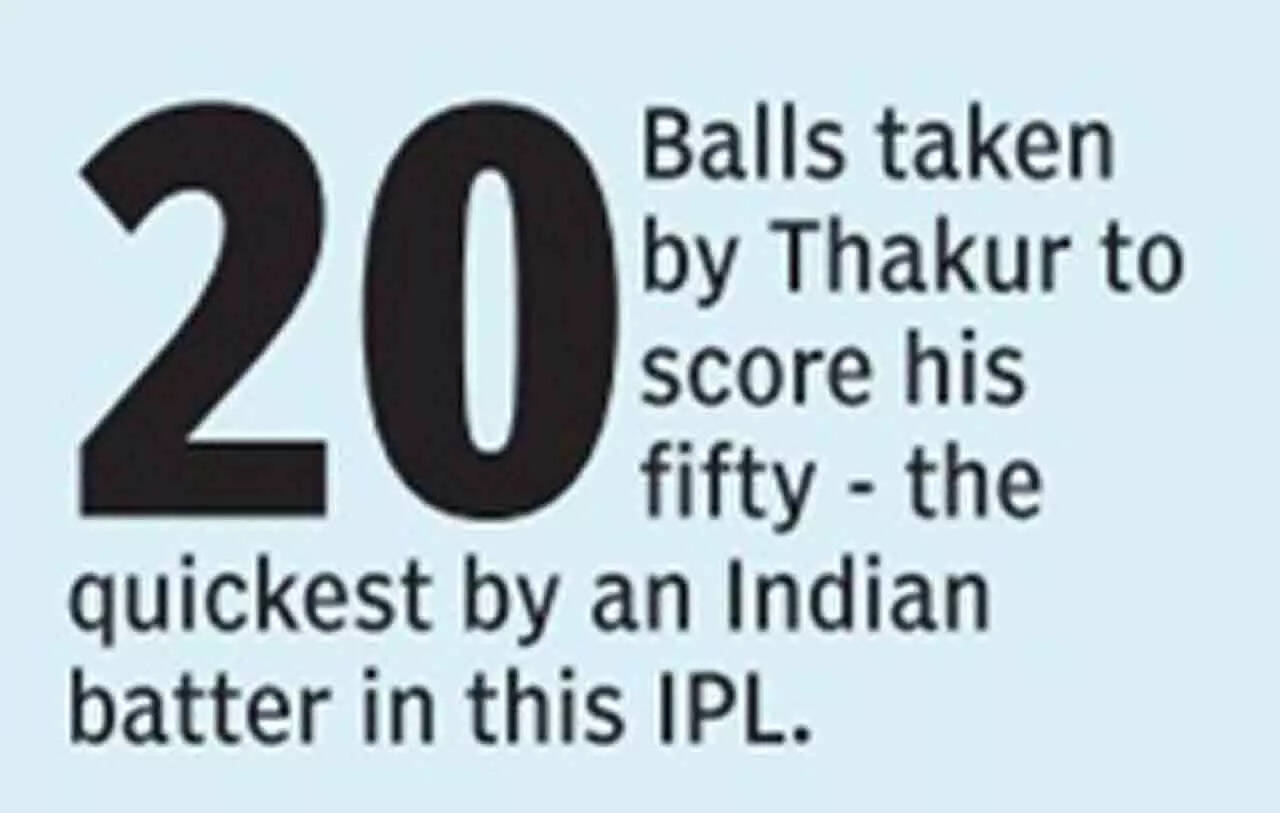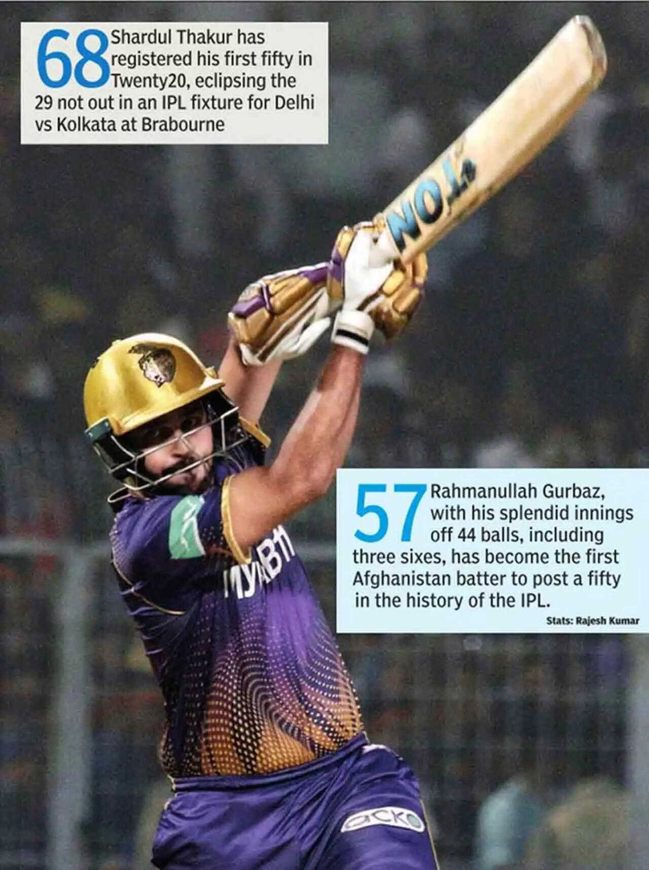Very few expected KKR to get to 204 for seven after struggling at 89 for five by the 12th over. But Thakur went hammer and tongs after Gurbaz kept the side in the game with a 44-ball 57.