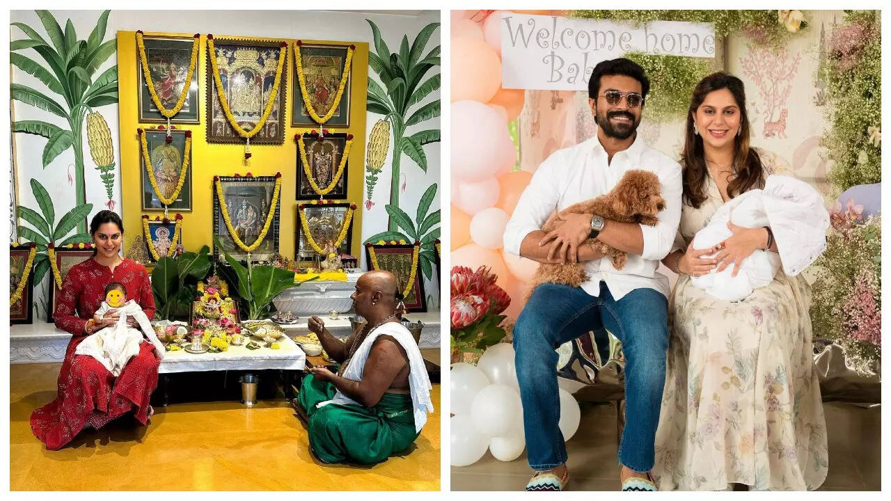 The new mom, Upasana Konidela, took to social media to share a photo of her and Ram Charan’s daughter Klin Kaara’s very first Varalakshmi Vratham. Upasana put a blushing smiley face emoji on Klin Kaara’s face in a bid to protect her privacy.