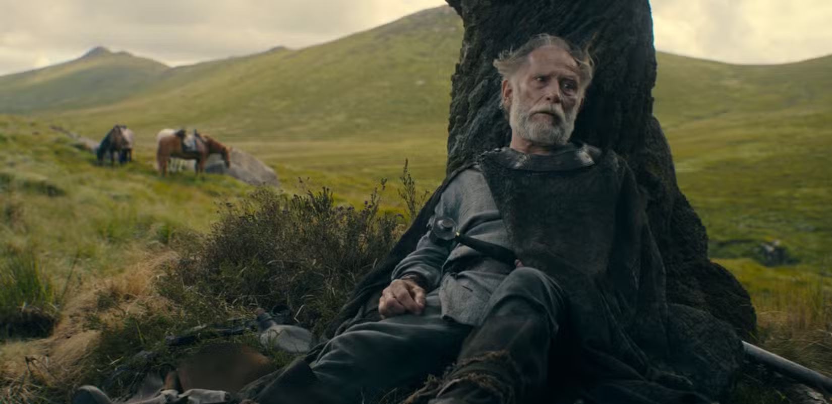 The show even underlines this in the flashback. In Episode 1, Dunk is seen burying Ser Arlan during a thunderstorm, and he later tells the Games Master that the only witness to his knighting was a songbird in a thorn tree because it was raining. But in this flashback in Episode 6, we hear thunder and see a storm rolling in, but crucially, it’s not raining yet. That means this scene is set before Dunk’s account of when he was knighted, moments before Arlan’s passing.