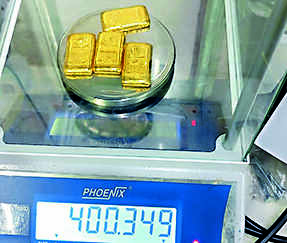 KOLKATA: Four gold bars weighing above 400 gms and worth Rs 20.8 lakhs — wrapped in black adhesive tapes — were found hidden under a seat of an IndiGo flight that reached Kolkata from Bangkok on Saturday. Customs officials said the gold bars were taped under seat 29F of IndiGo flight 6E 078.