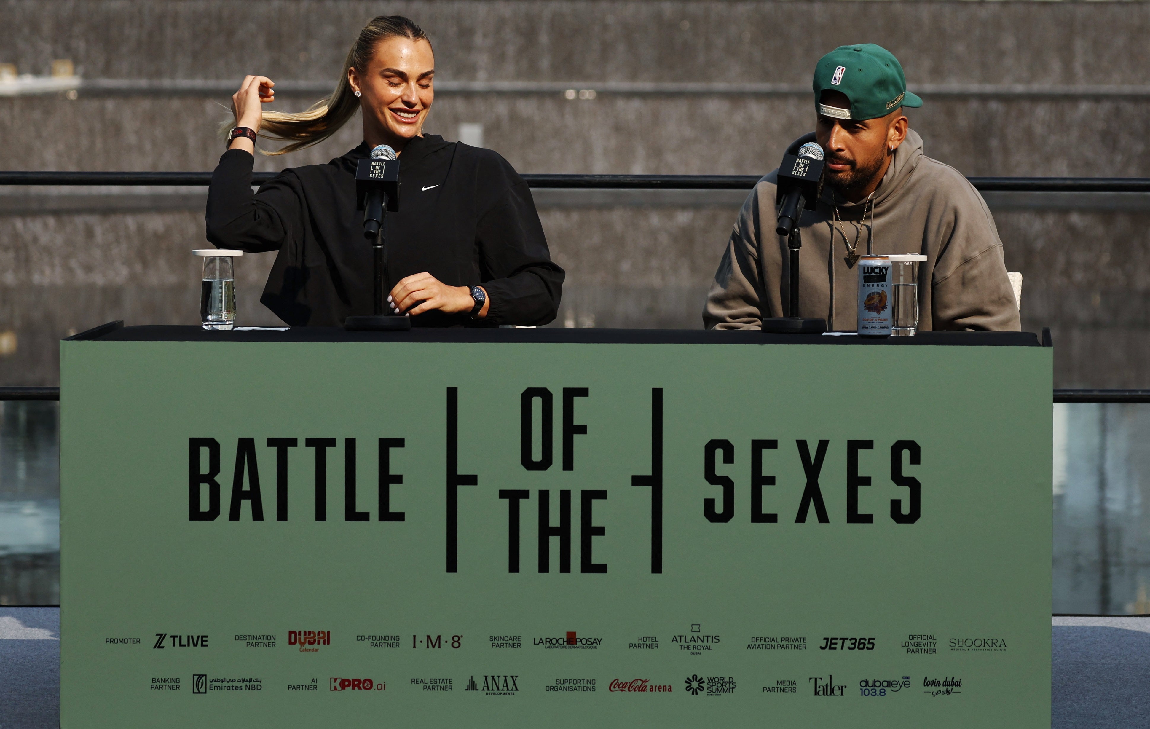 Kyrgios and Sabalenka face off at Battle of the Sexes press conference