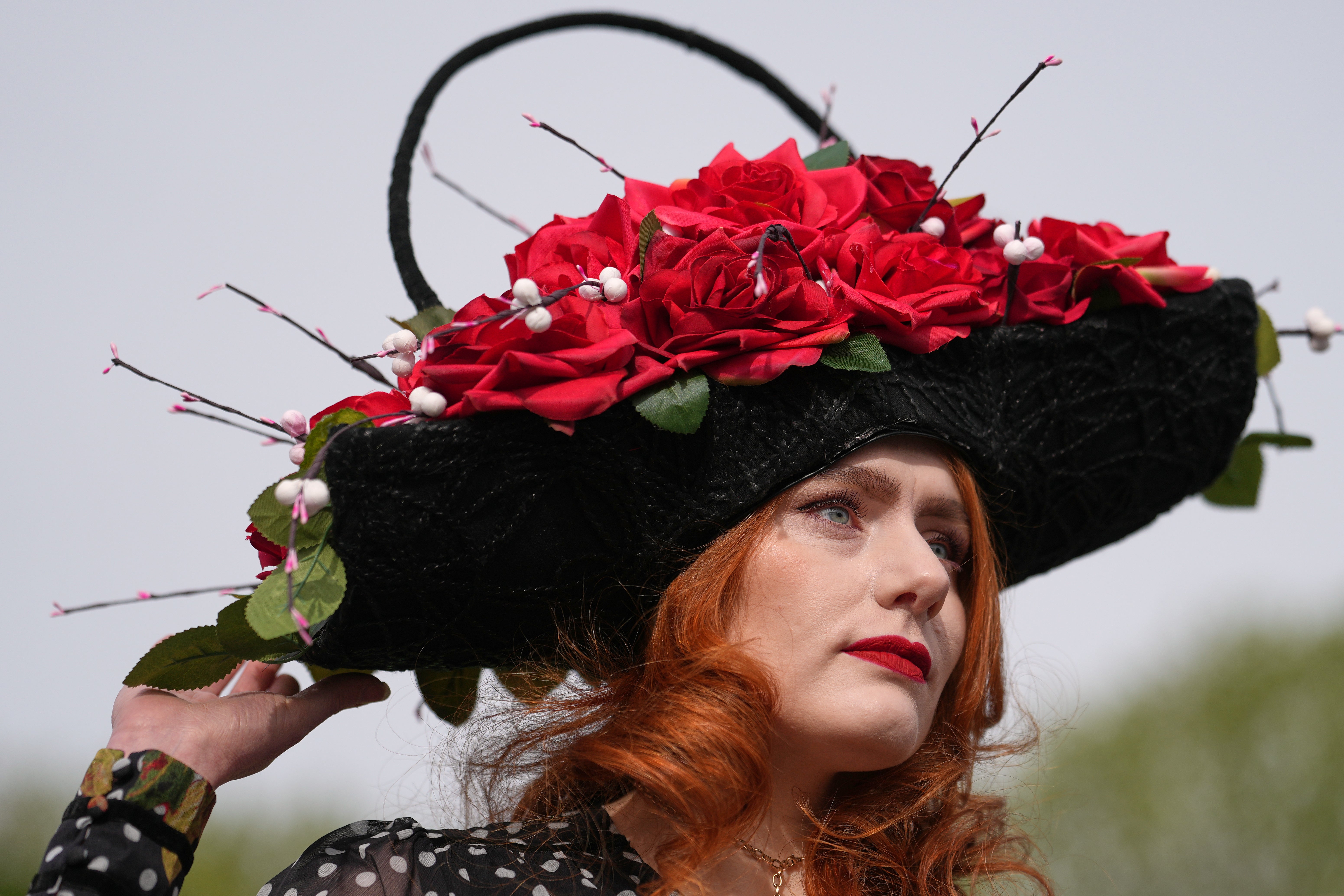 Charlotte Hawes, from Wallasey, Wirral, described her striking black hat, adorned with red roses, as “heavy” but “secure”.