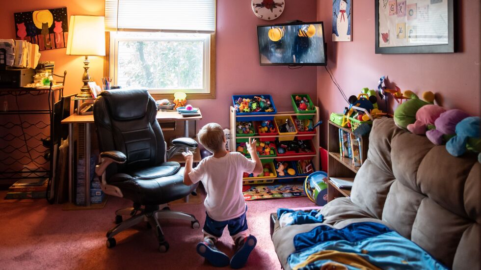 Now, he’s back to watching “Mickey Mouse Club” and “Bluey” cartoons, rubbing a squishy gray blanket on his face, army-crawling at a furious pace from room to room and, when someone needs to get at his G-tube to feed him, pulling up his shirt to help.