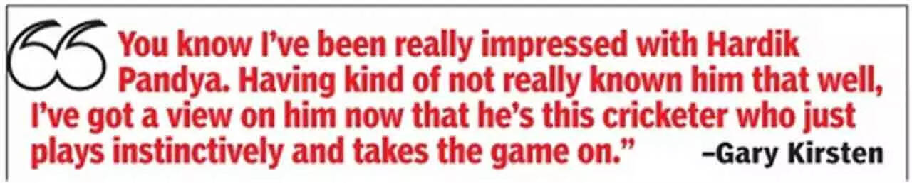 MUMBAI: Behind the scenes, quietly like he has been known to go about, India's World Cup-winning coach Gary Kirsten mentored the Gujarat Titans to fashion themselves into a winning outfit in their very first season. Working alongside him, was allrounder and captain Hardik Pandya. The latter has left a telling impact on Kirsten after this trophy-winning season.