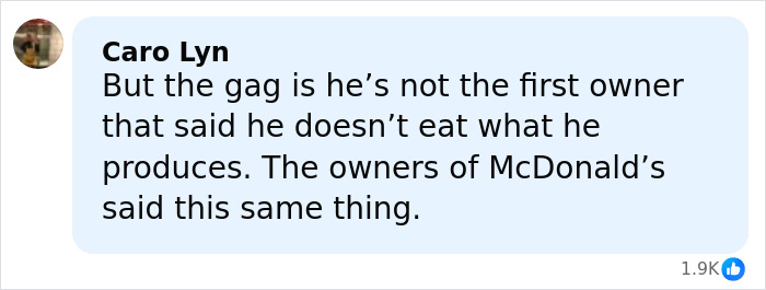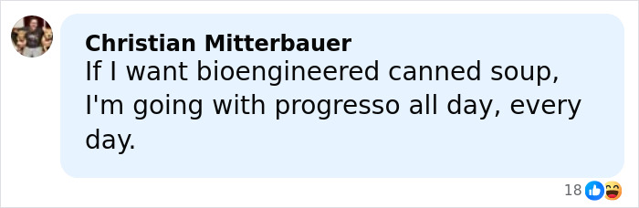 “We have sh** for f***ing poor people. Who buys our sh**? I don’t buy Campbell’s products barely anymore. It’s not healthy now that I know what the f***’s in it,” he said. “Bioengineered meat – I don’t wanna eat a piece of chicken that came from a 3-D printer.”