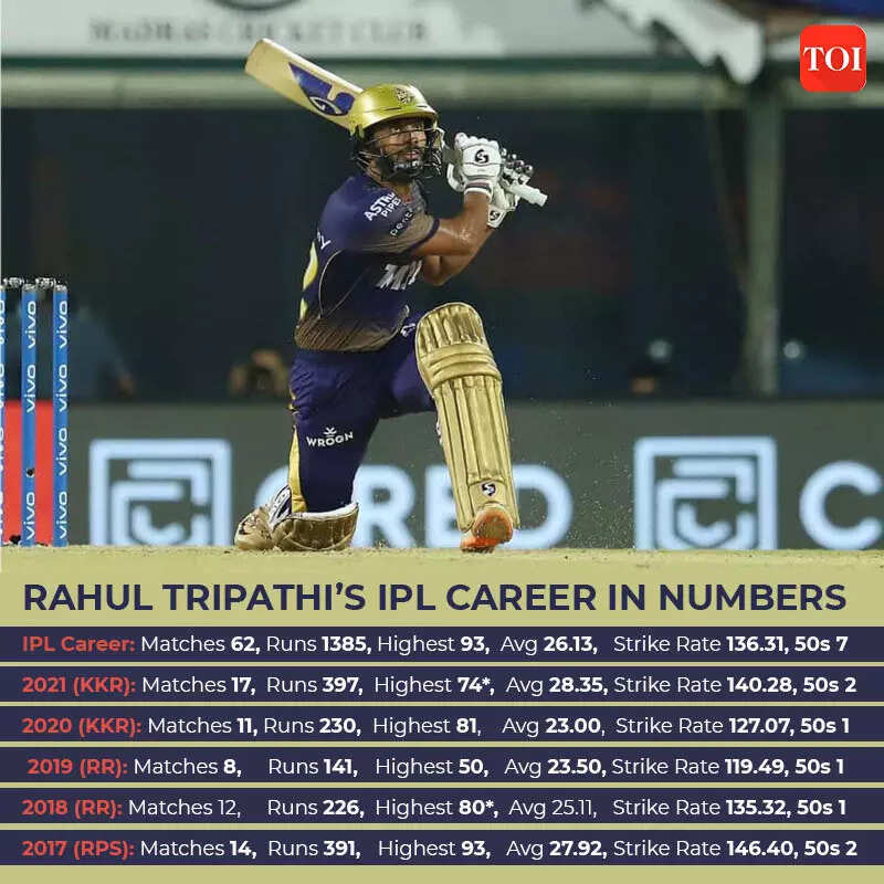 2020 and 2021 saw Tripathi play for two time champions, KKR. He scored 230 runs in his maiden appearance for KKR in 2020, averaging 23.00. In 2021, the 31-year-old had an impressive run as he managed 397 runs in 17 matches at an average of 28.35.