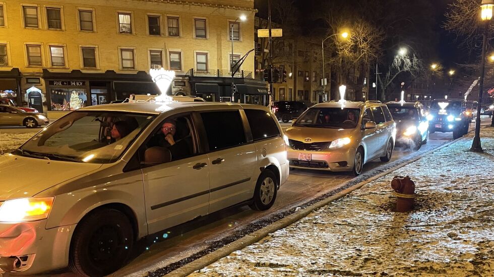 Robert Wasserman was one of dozens of people who paraded through Chicago in a menorah-topped car Sunday to celebrate the first night of Hanukkah.