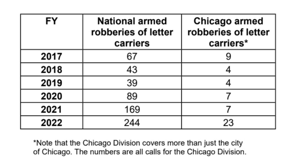 Chicago has seen a dramatic increase in robberies of letter carriers, too, from nine in 2017 to at least 23 last year, according to the records.