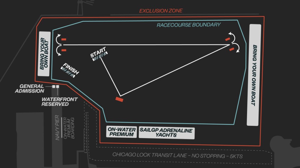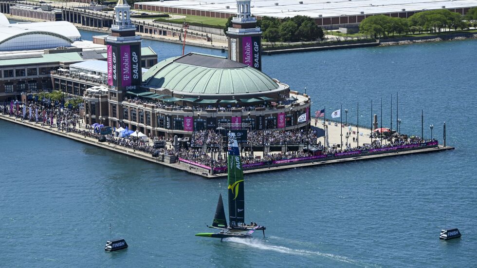 The Chicago race is unique to sailboaters because it’s the only freshwater course in SailGP’s international circuit. The boats can go quicker in fresh water because there’s less drag than in salt water. But freshwater is also less buoyant, so the boats must reach higher speeds to rise up on their foils.