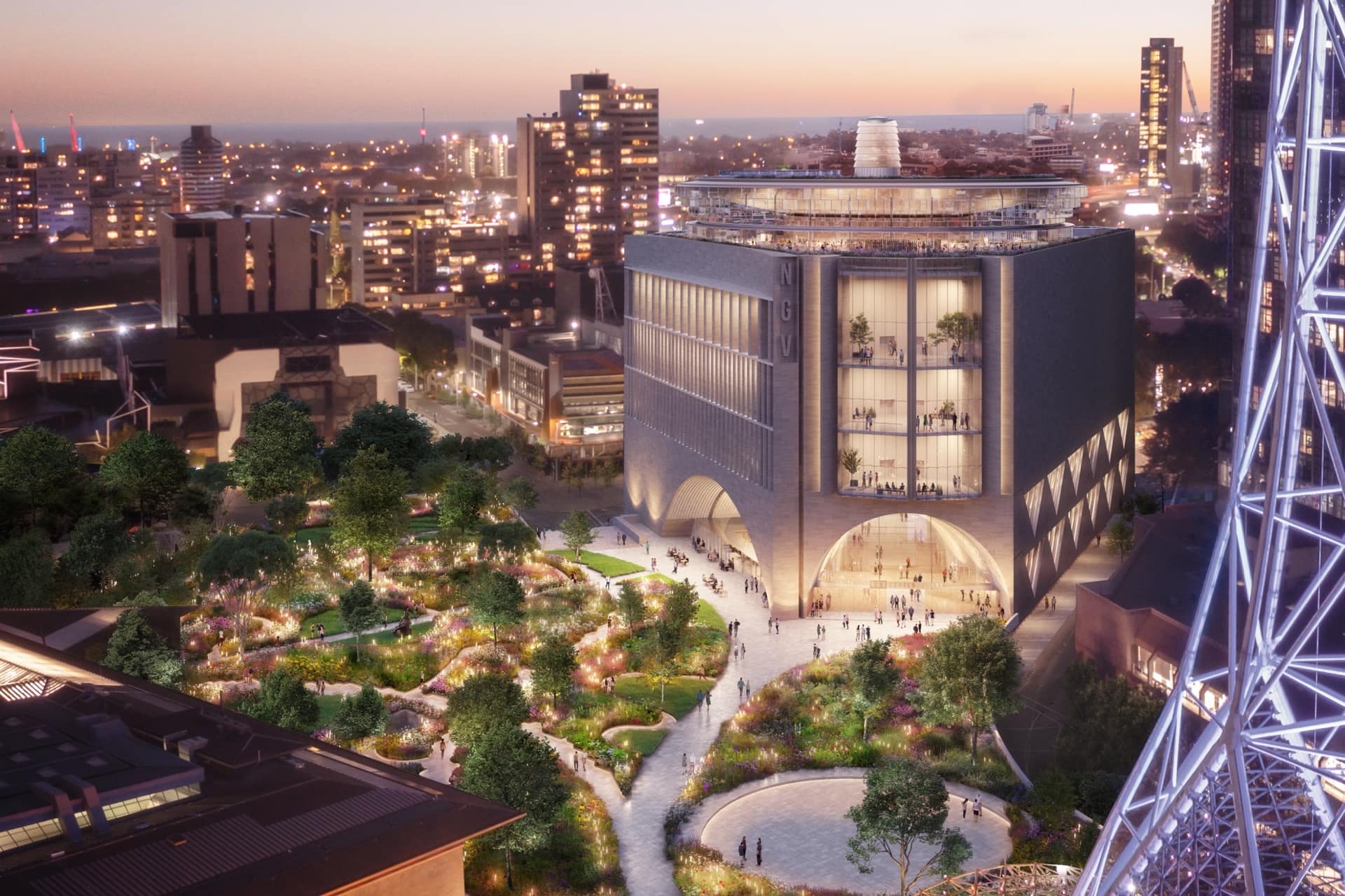 The new gallery forms part of the $1.7 billion redevelopment of the Southbank precinct, the Melbourne Arts Precinct Transformation, which also includes upgrades to the Arts Centre Melbourne, as well as Arts Centre Melbourne's new Centre for Creativity.