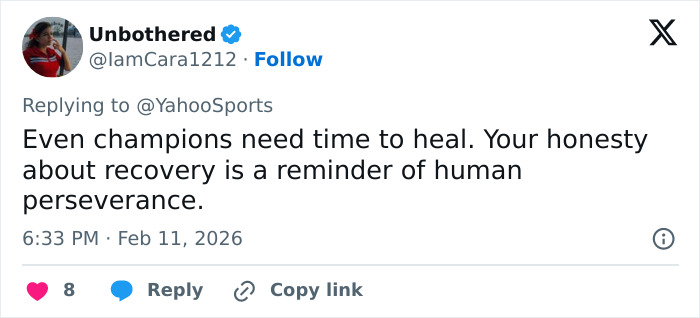“Champions need time to heal.” Fans sent the Olympian their best wishes