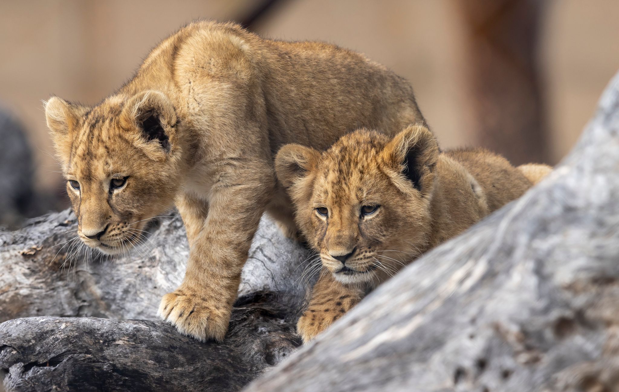 "The cubs are very adventurous and playful and love having their dad Lwazi out with them to practise their pouncing, stalking and play-fighting skills with."