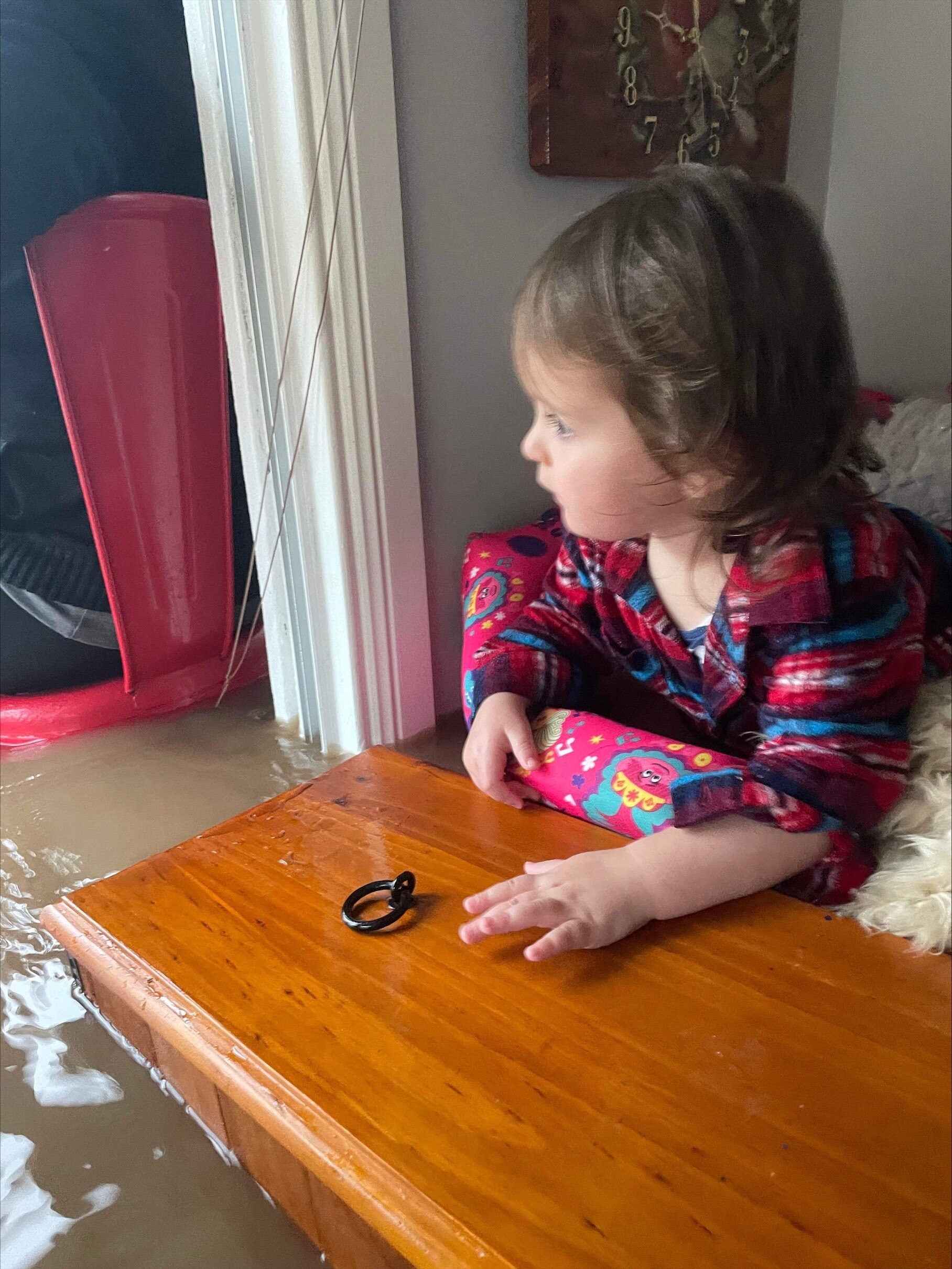 "I'm sitting on a table. My feet are in the water. There's nowhere to go. Once we've got about another six inches and we're all going to have to swim out. I don't know what we can do.