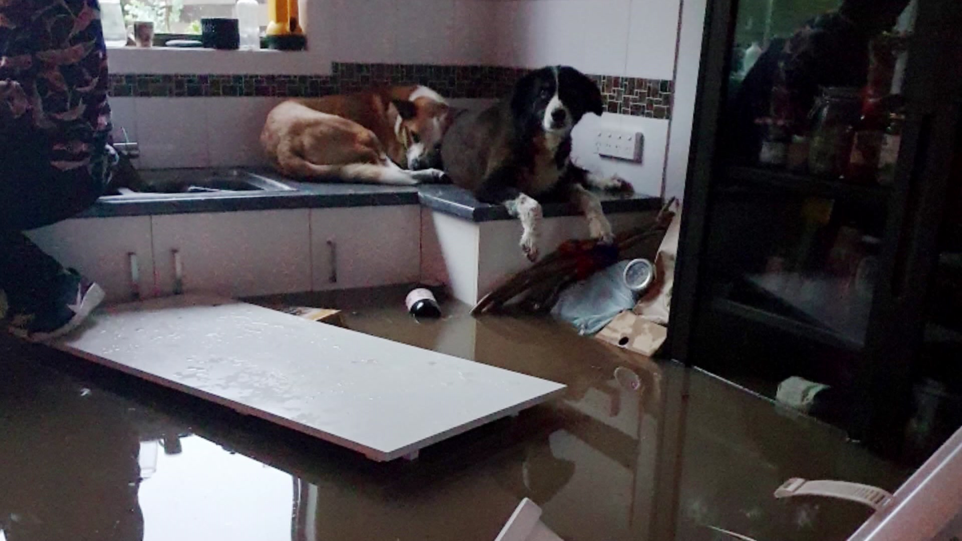 "The dogs are sitting up on the kitchen bench. Look, it's just a nightmare, I'm sorry. We're all a bit frightened. We're very frightened," she said.