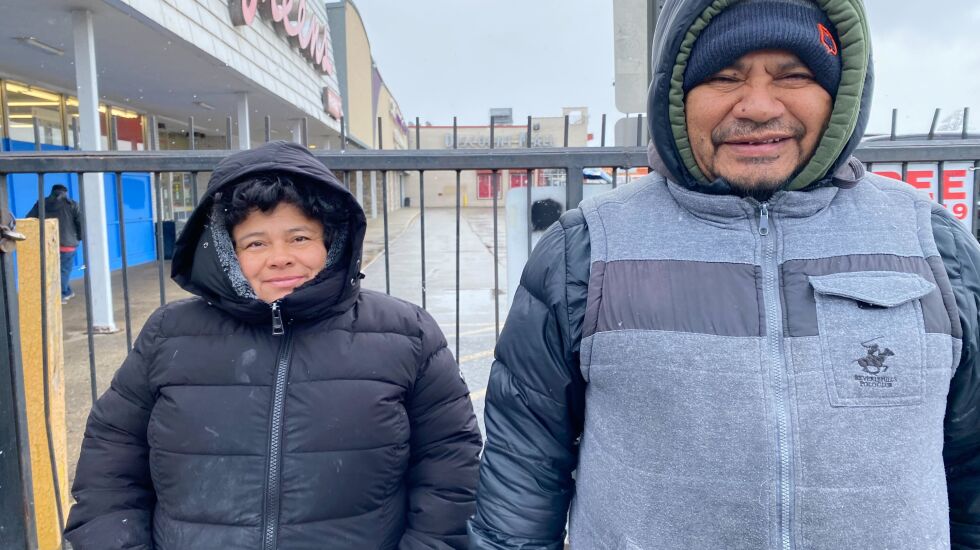 Maria Aguilar and Solomon Yuman, a couple who work as street vendors along West 26th Street in Little Village. (Michael Loria/Sun-Times)