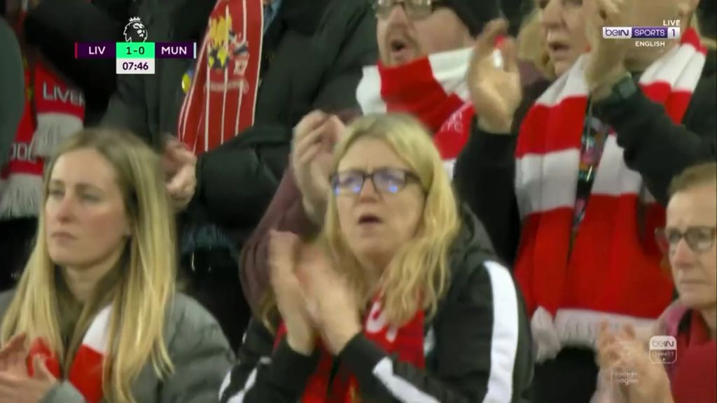 In the seventh minute of the match, supporters from both teams stood and applauded, with Liverpool fans singing the club's anthem, You'll Never Walk Alone.