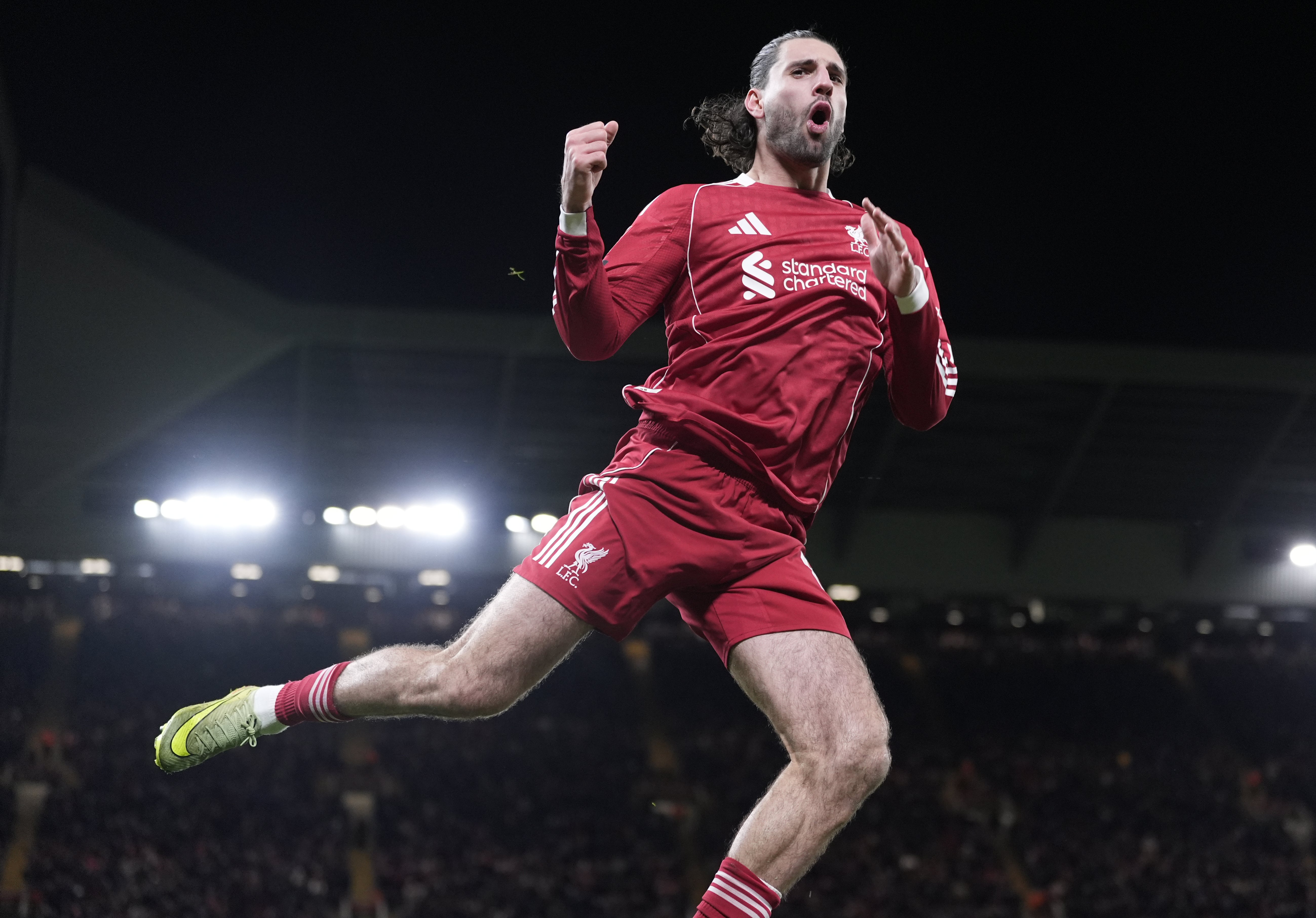 Jack Hinshelwood should have equalised but headed over and Diego Gomez would have had it not been for a good save from Alisson Becker, surprisingly preferred to second-choice Giorgi Mamardashvili.