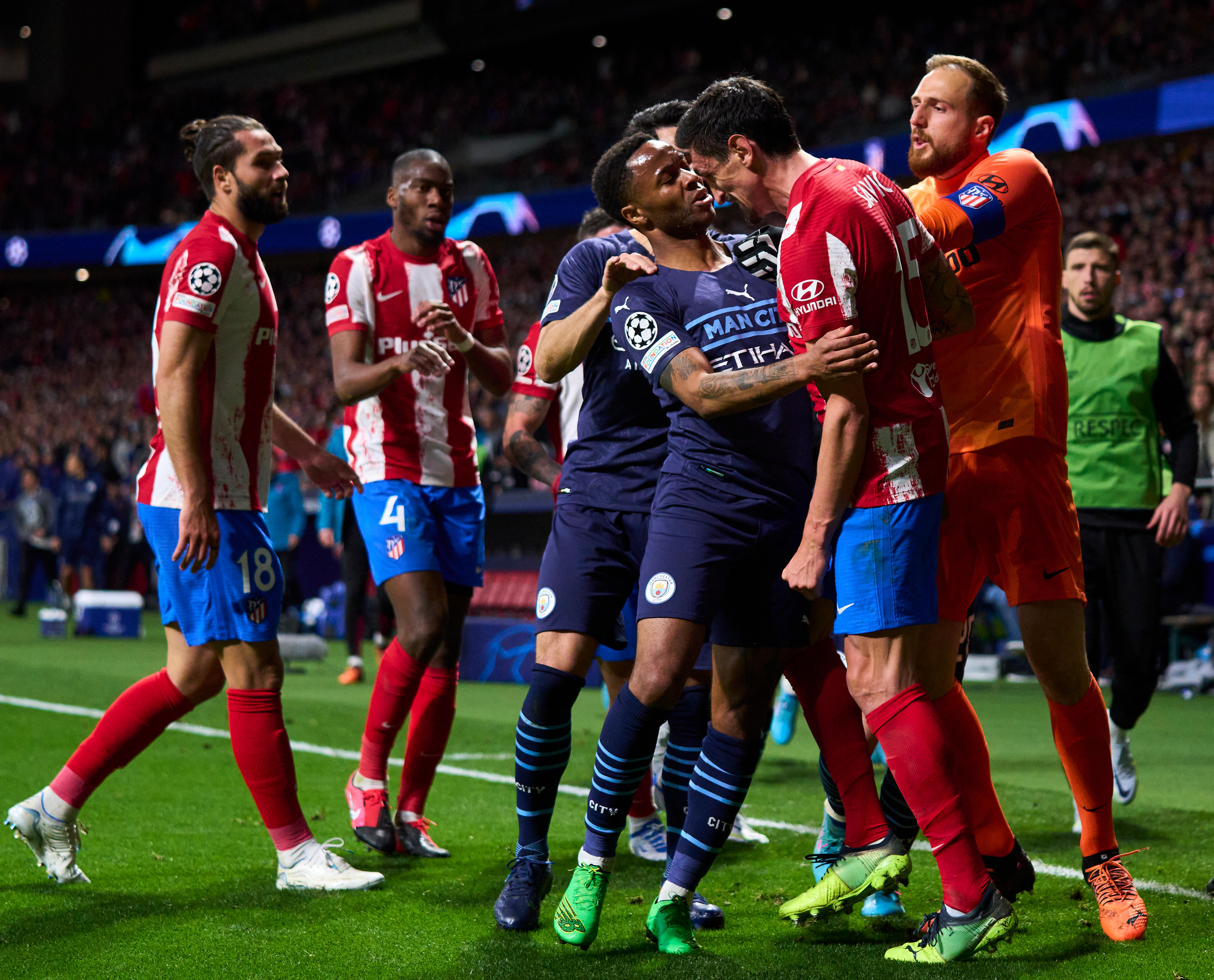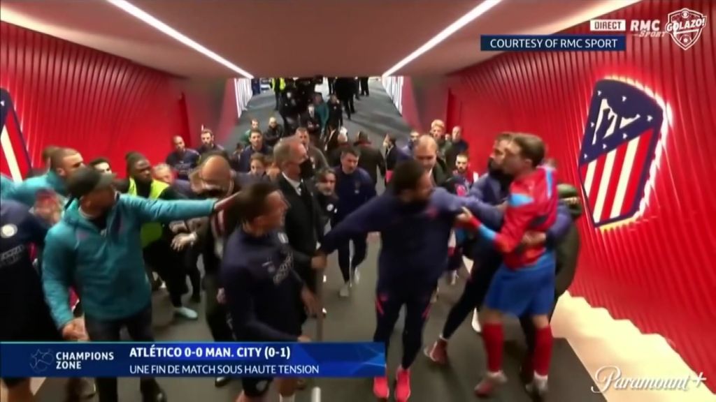 An on-field spat between Atlético Madrid and Manchester City players has spilled into the tunnel after their Champions League quarter-final.
