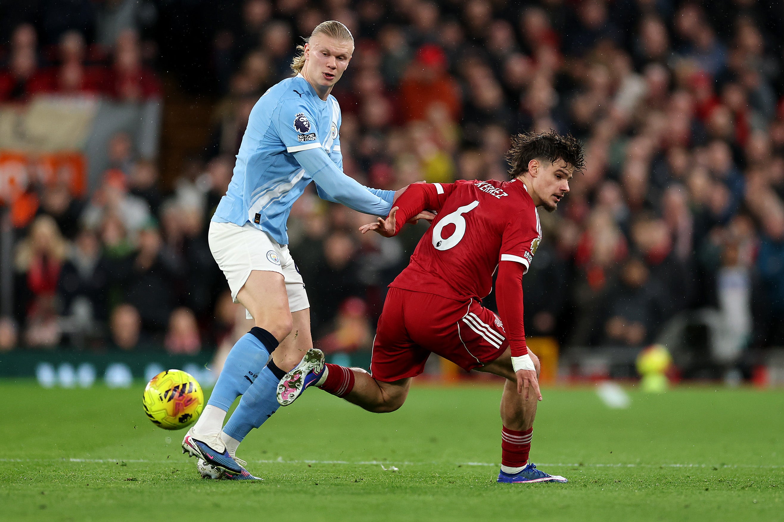 Rayan Cherki had an injury-time strike disallowed after finding the net from the half-way line as Szoboszlai and Haaland chased the shot, with first the Hungarian fouling the Norwegian and then the City striker tugging back the Liverpool right-back, but with neither making contact with the ball.