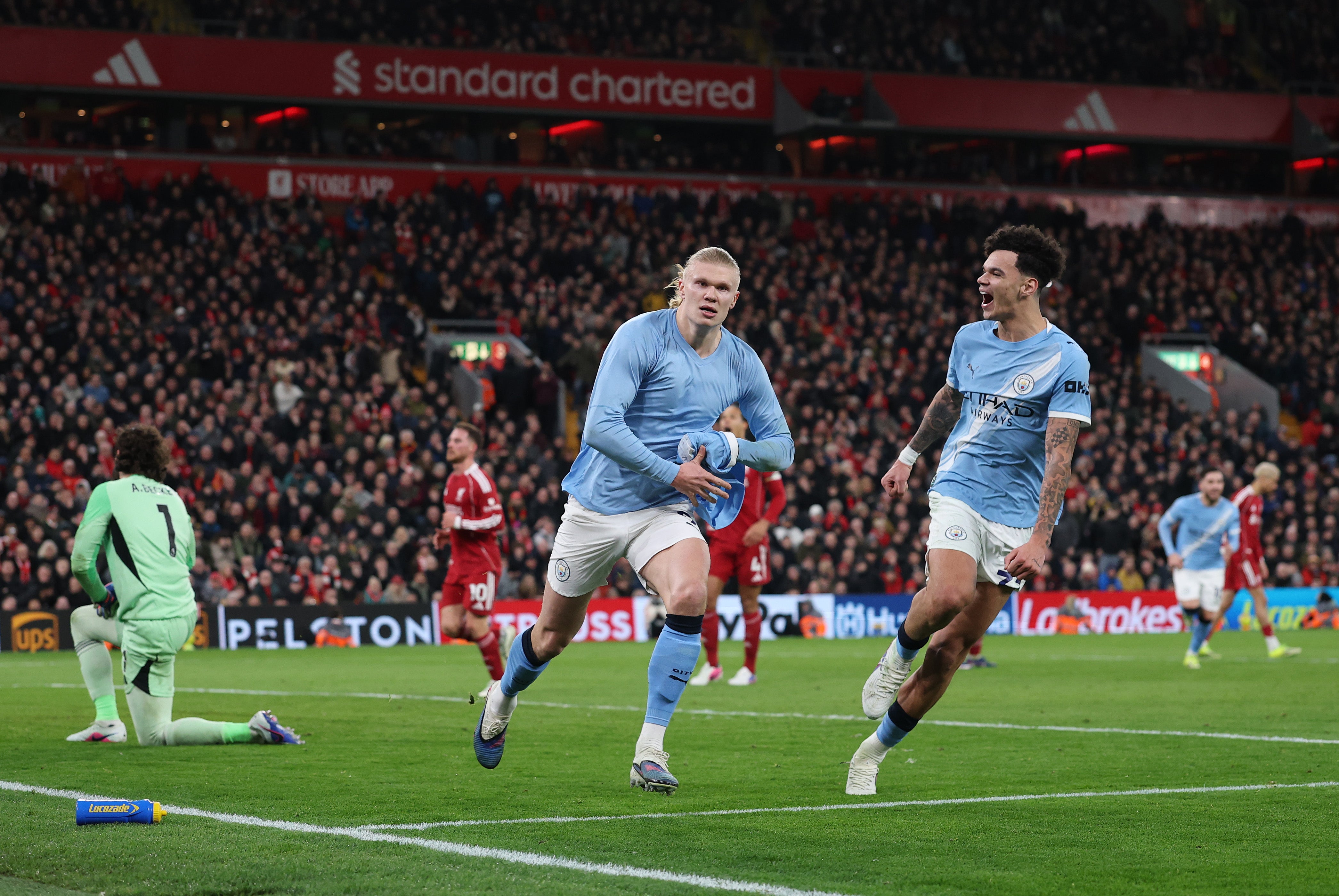 Dominik Szoboszlai scored a stunning free-kick to give Liverpool the lead, but Bernardo Silva poached an equaliser before Erling Haaland converted a late penalty to settle the game.