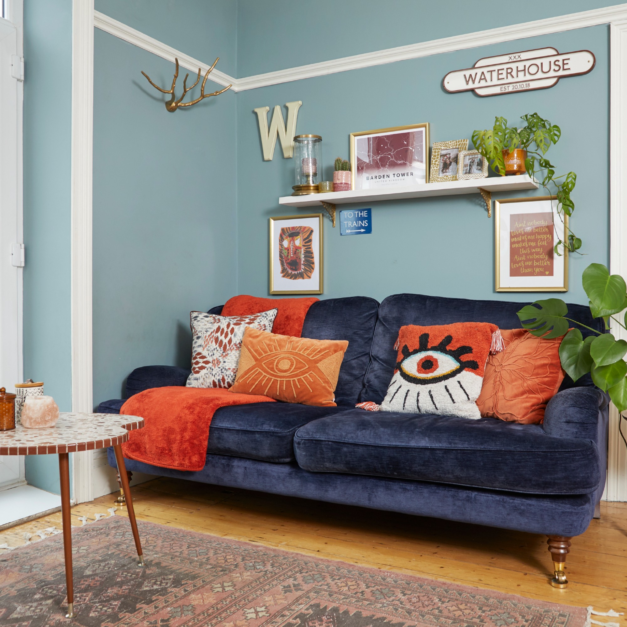 Perhaps a colour combo that you wouldn't naturally think think of, sky blue and burnt orange work extremely well together.