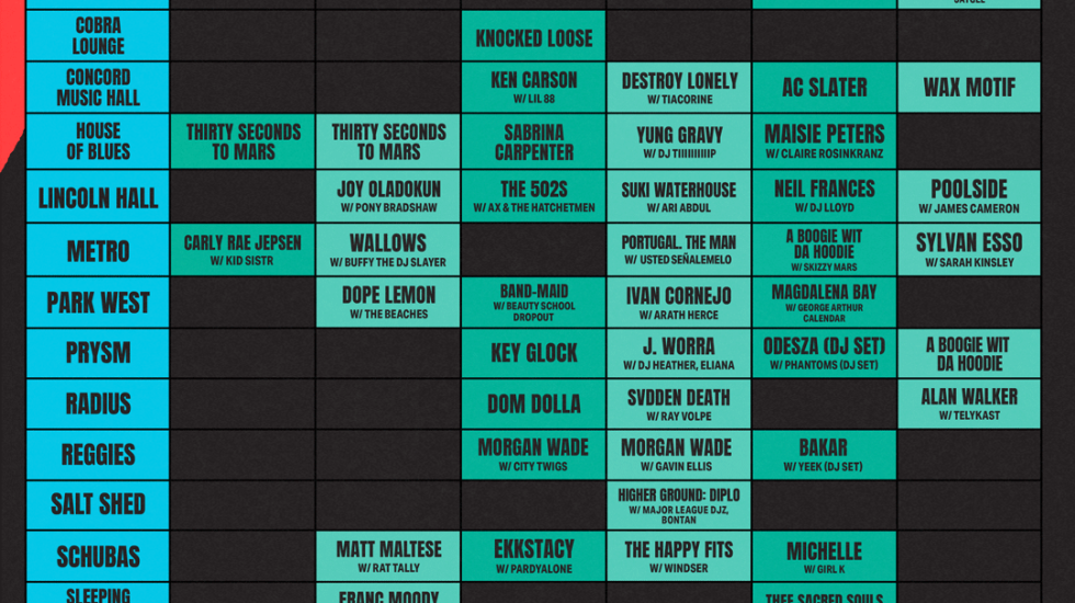 If you’re ready to stay up late past the main event, you can see sets from artists performing at the festival all around the city, from Thalia Hall in Pilsen to Schubas Tavern in Lake View.