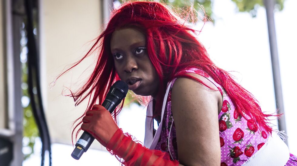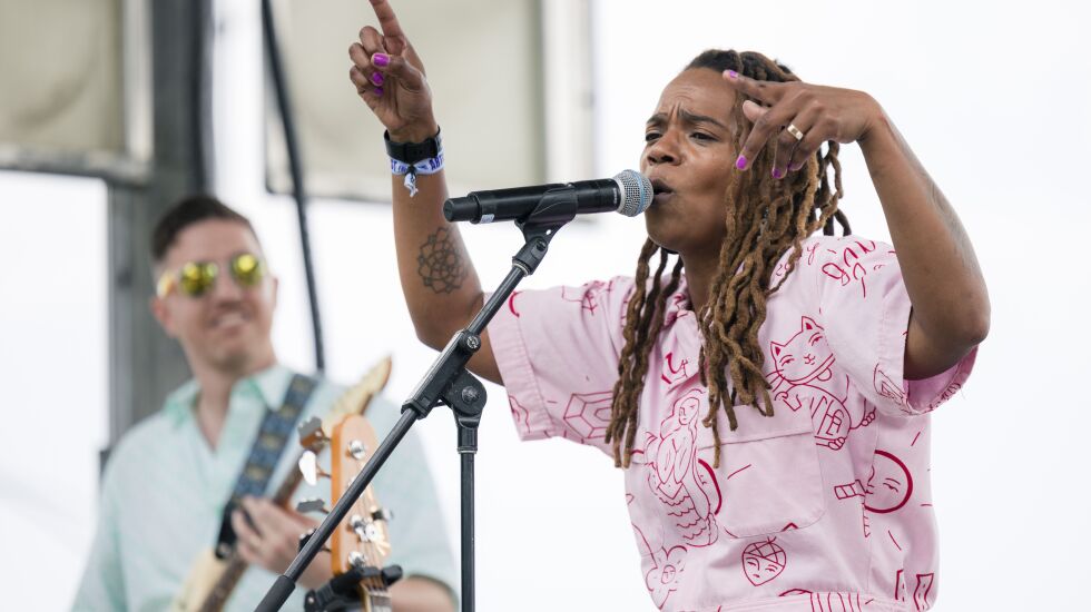 Rising star Hemlocke Springs, the stage name of 24-year-old North Carolina native Isimeme Naomi Udu, rose to fame the 21st century way — by posting her music on SoundCloud and TikTok. She has little performance experience, but her stage moves Friday afternoon resembled those of a seasoned pro. When she ran around in circles onstage, it made for a gloriously cartoonish image that accented the infectious music. —Bobby Reed