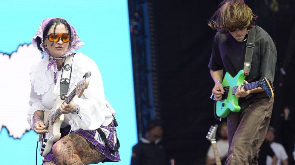 Emily Kempf hit the stage as a superb candidate for the best-dressed artist at Lolla. The Chicago-based indie-rock trio’s aesthetic is distinguished by unconventional approaches, and the vocal interplay between singer and bassist Emily Kempf and singer, guitarist Jason Balla made “Clear” (a cut from the 2022 album “Blue Skies”) a particular highlight, and the co-lead vocalists also displayed their comedy chops. Drawing on ’60s garage rock, the band whipped through 20 songs, many punctuated by Kempf’s mesmerizing whoops, tongue cluck noises, powerful, controlled howls and even some “sha-la-la” lyrics and “hiccup” style vocalizations that are familiar to fans of early rock pioneer Buddy Holly. Dehd made some old, tried-and-true musical elements seem remarkably fresh. —Bobby Reed