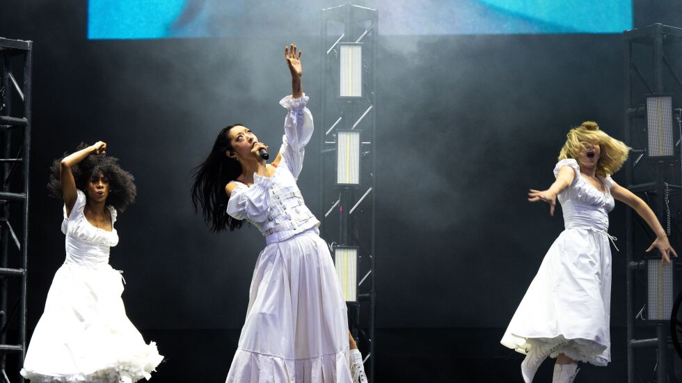 Bakar might have been feeling the effects of the depressing weather Sunday. It took a bit for the London-based singer, producer and model (who often worked with the late Virgil Abloh) to bring some needed energy to his set. A sea change came in the set with the 2023 single “Alive!” as the singer took the message to heart and brought some life to the performance, jumping down from the stage to co-mingle with the crowd on the barricade. By the time he came upon uber hit “Hell N Back,” Bakar had climbed a section of scaffolding, standing on the lip of the VIP section as he led a mass singalong of the track, much like what happened this year at Coachella, where the crowd nearly drowned him out. By the time his new album “Halo” comes out in September, there’s no doubt the British talent will hit his stride and be a big one to watch. —Selena Fragassi