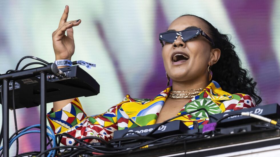 Lesly Reynaga kicked off the first day of Lollapalooza in Grant Park with a noon set on the Bacardi stage, playing some songs off her latest album, “Valerosa,” for a small crowd that gathered at the front of the stage. Her music is a beautiful blend of regional Mexican and Latin and American pop music, and she borrows elements from each genre to create a sound that is uniquely her own. She sings in ballads about all of the things she experiences in life: being a part of a long line of strong women, being a mom, existing at the intersection of the U.S.-Mexico border. — Ambar Colon