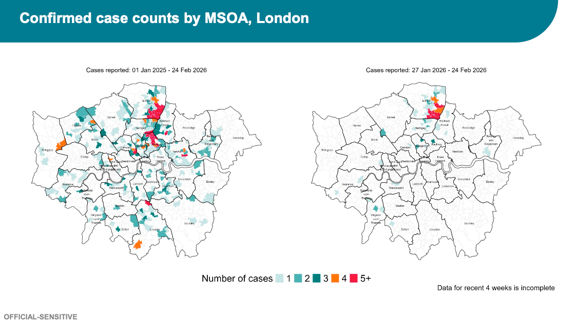 An internal report from the UK Health Security Agency shows there have been 340 suspected cases of measles in the capital since the start of 2026.