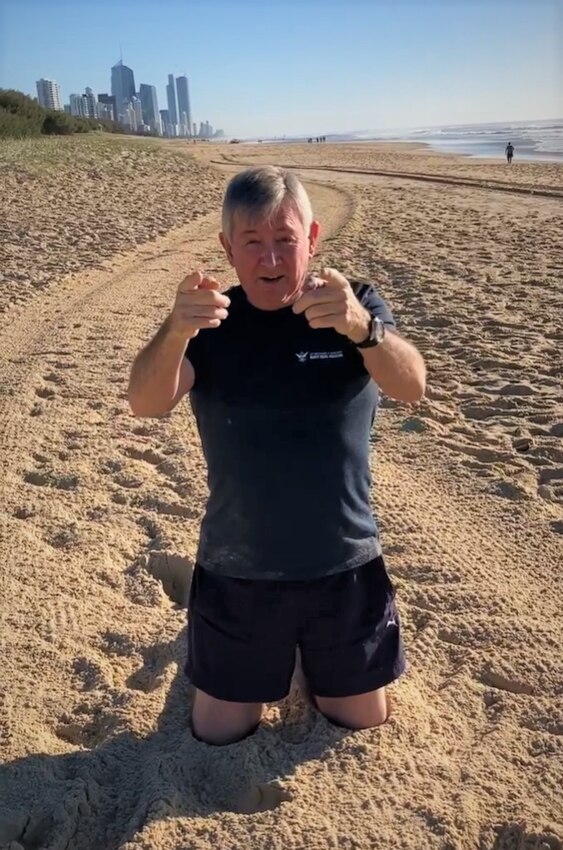 Chris Stear turned 70 in June and celebrated the milestone by doing 70 push-ups non-stop on a Gold Coast beach.