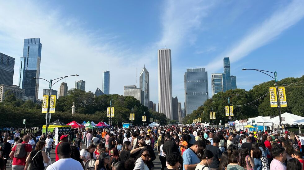Returning this year to the city’s largest food festival are staples such as Connie’s Pizza, Churro Factory, Eli’s Cheesecake and Robinson’s No. 1 Ribs. There were also new events at the festival, like a karaoke stage and a tribute to the late DJ Casper, creator of the Cha Cha Slide.