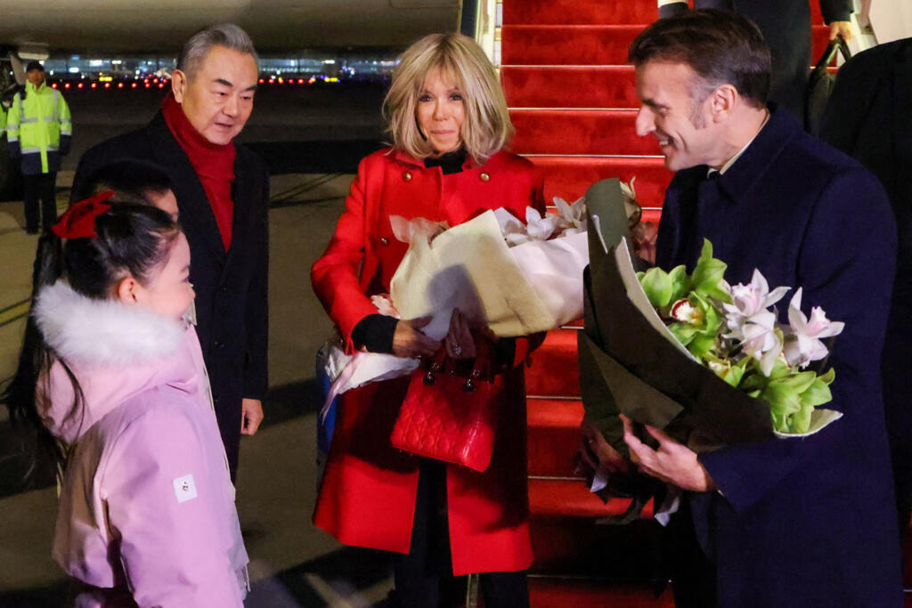 Xi and First Lady Peng Liyuan welcomed Macron and his wife Brigitte with a red carpet, an honour guard and flag-waving children.