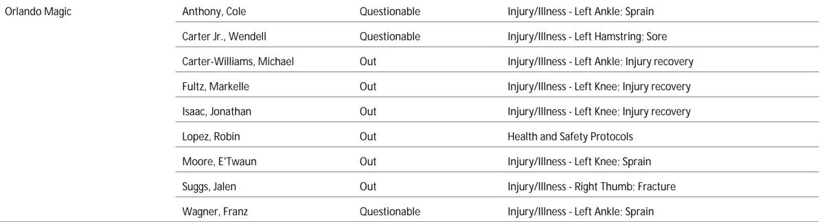 Cole Anthony (sprained left ankle) and Franz Wagner (sprained left ankle) will both be available to play tonight at Detroit.