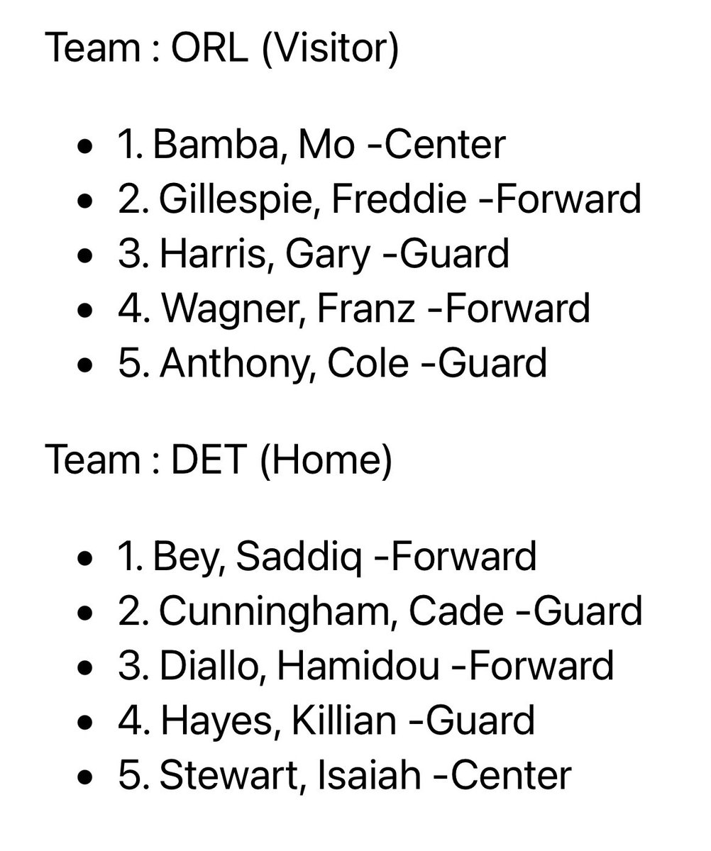 #Pistons starters: Hayes, Cunningham, Diallo, Bey and Stewart. – 6:44 PM