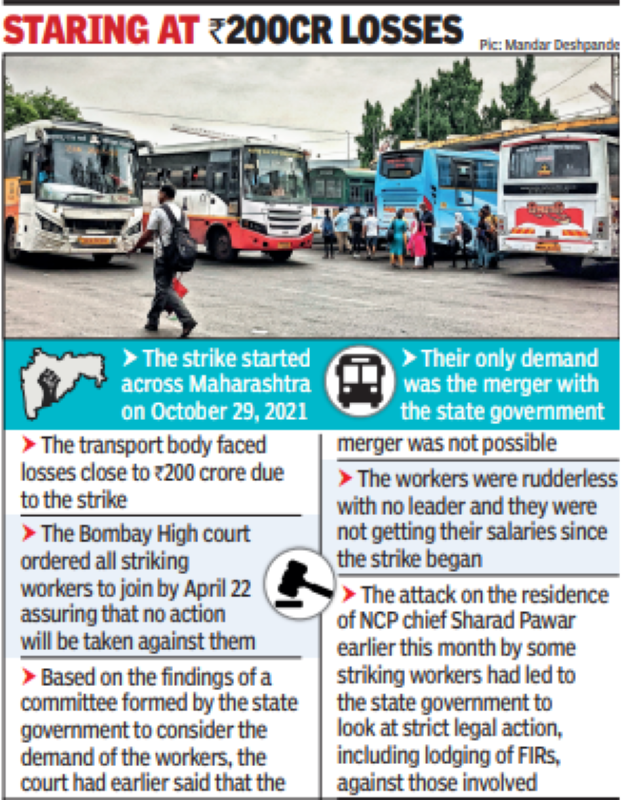 PUNE: The six-month-old Maharashtra State Road Transport Corporation (MSRTC) strike is over. Shekhar Channe, vice chairman and managing director of the transport body, said that except for some 1,000 employees, the rest had reported back to work.