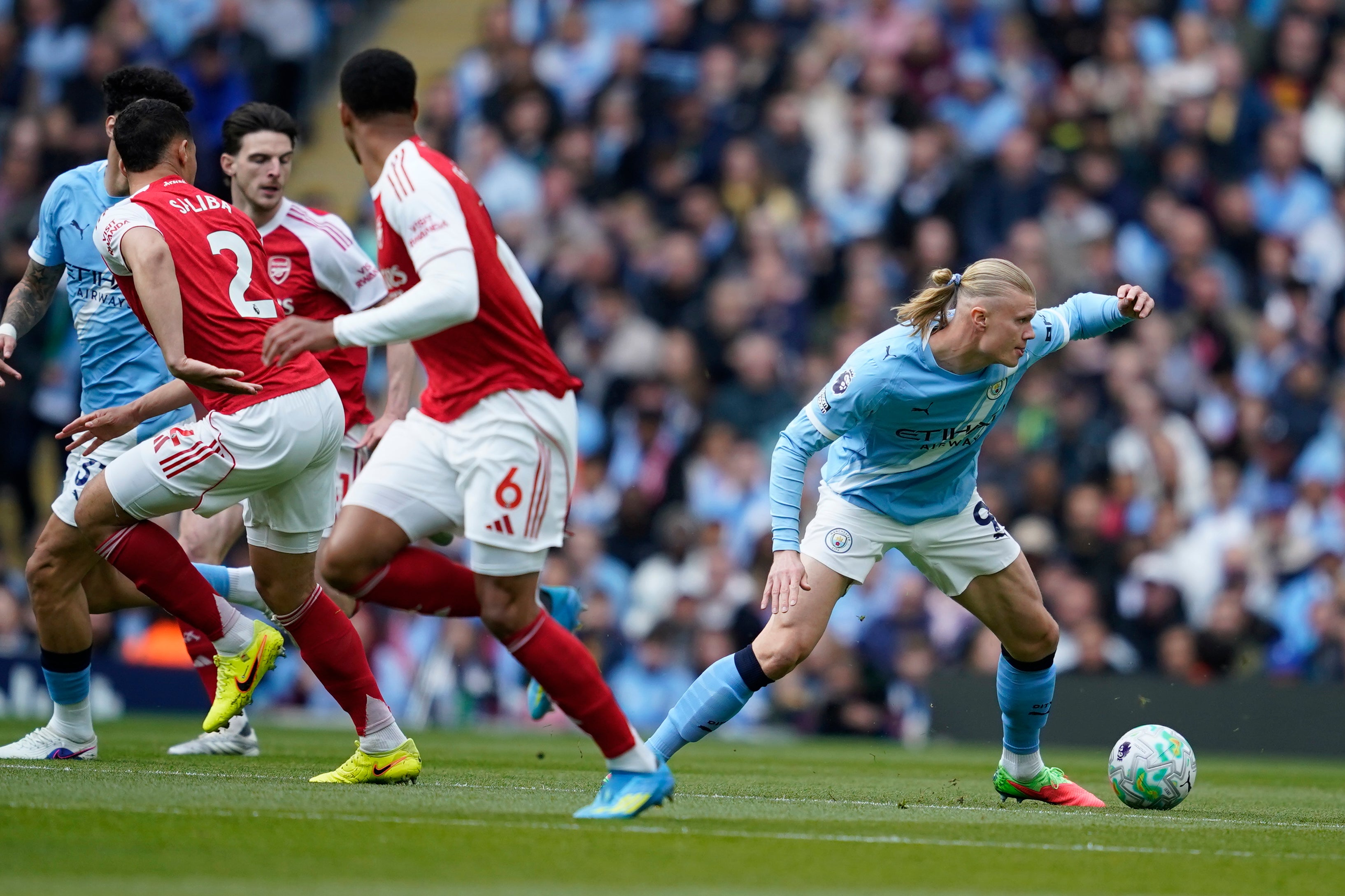 With a title race that is this close, however, Gabriel staying on the pitch and avoiding a three-game ban for violent conduct could be crucial. “He can thank Haaland a lot, Gabriel, for not going down and holding his nose,” Gary Neville said on Sky Sports.