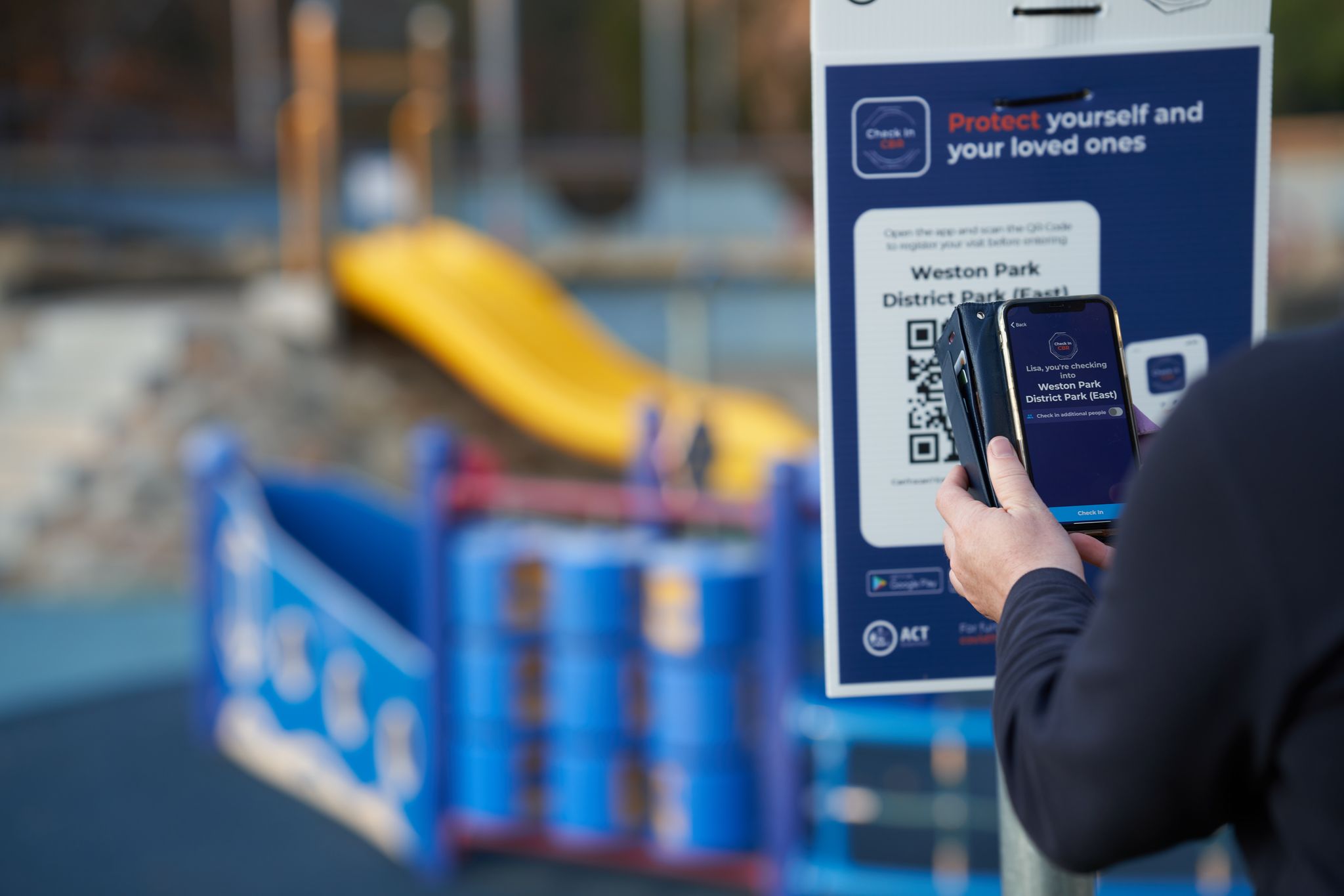 After lockdown, Canberrans were checking in at outdoor playgrounds. Now, the Check In CBR app is only mandatory at a limited number of high-risk venues. (Supplied: ACT government)