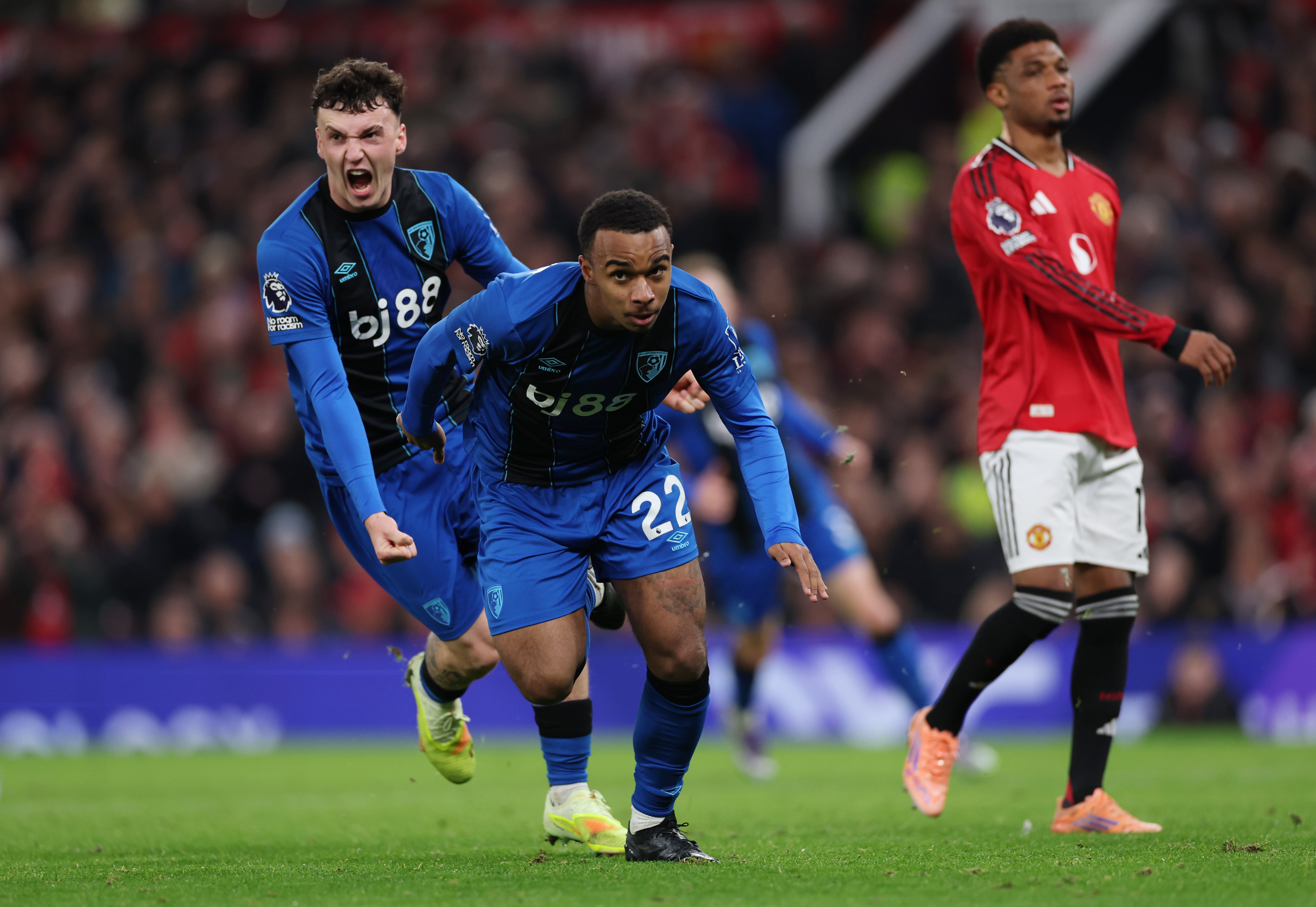 Bournemouth trailed 2-1 at half-time but Evanilson pounced within a minute of the restart before Marcus Tavernier was fouled by Casemiro on the edge of the box and stepped up to beat Senne Lammens with his free-kick.