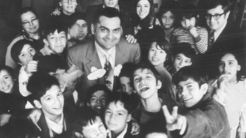 The son of an immigrant stockyard worker, Manuel Sanchez became Chicago’s first Mexican American school principal when he was named head of Komensky School, 2001 S. Throop St., in 1971.