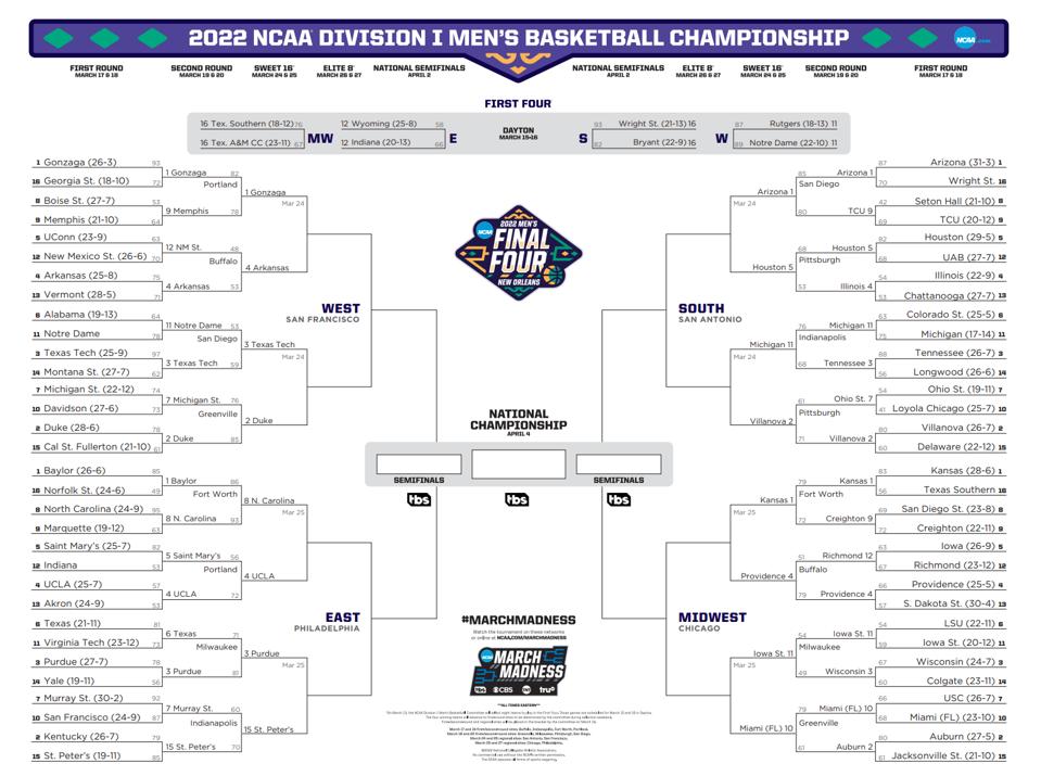 You can see how the updated 2022 NCAA Tournament bracket looks ahead of the Sweet 16 below: