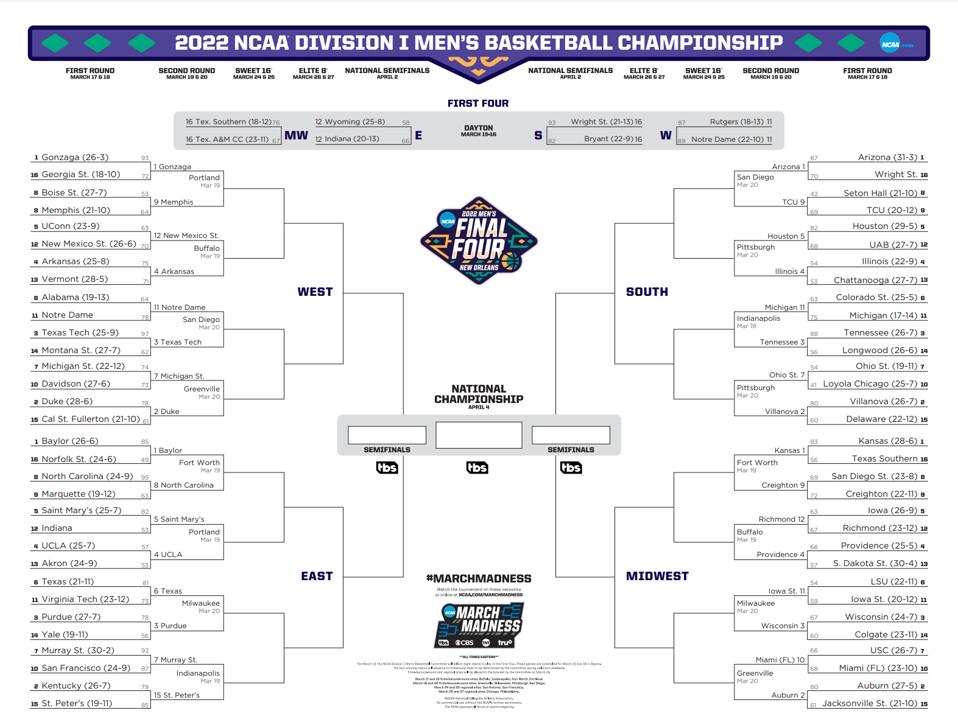 Today’s 2022 NCAA Tournament Games Second Round Schedule, Odds